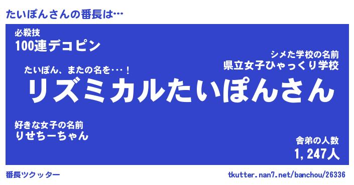 | 男性向けラノベタイトル風あだ名 | 『たいぽんの憂鬱』 |