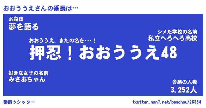 | 肩書あだ名 | 『おおううえ社長』『おおううえ国家主席』 |