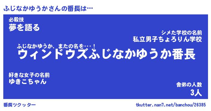 | 伝説のあだ名 | 『伝説のスナイパーふじなかゆうか』 |