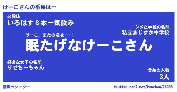 | 猫の名前『けーこーにゃん』性別『♂』 |