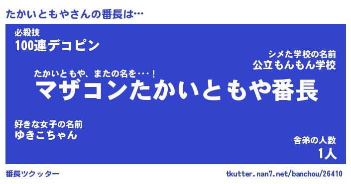 | ヒーロー風カッコイイあだ名 | 『スーパータカイトモヤ』『黄金騎士タカ』 |