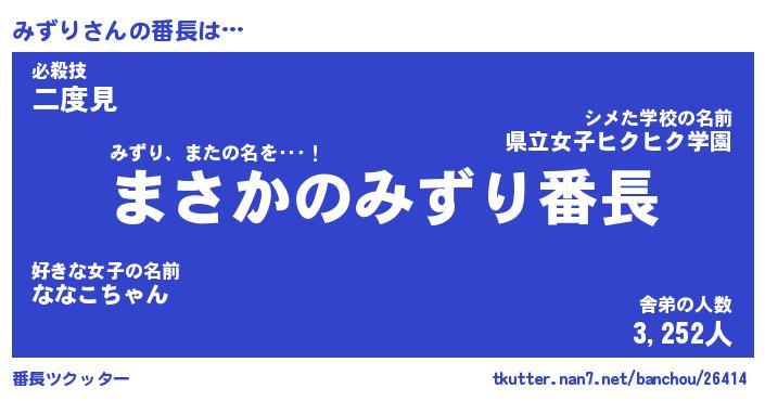 | ヒーロー風カッコイイあだ名 | 『スーパーミズリ』『ウルトラみずりマン』 |