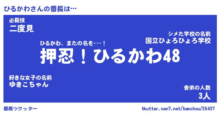 | ヒーロー風カッコイイあだ名 | 『スーパーヒルカワ』『天弓騎士ヒル』 |
