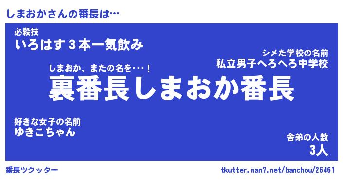 | ヒーロー風カッコイイあだ名 | 『スーパーシマオカ』『幻影騎士シマ』 |