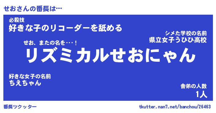 | 意味不明あだ名 | 『ペロリンせお』『せおフォーエバー』 |