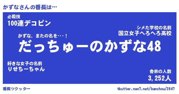 | 意味不明あだ名 | 『ペロリンかずな』『かずなフォーエバー』 |