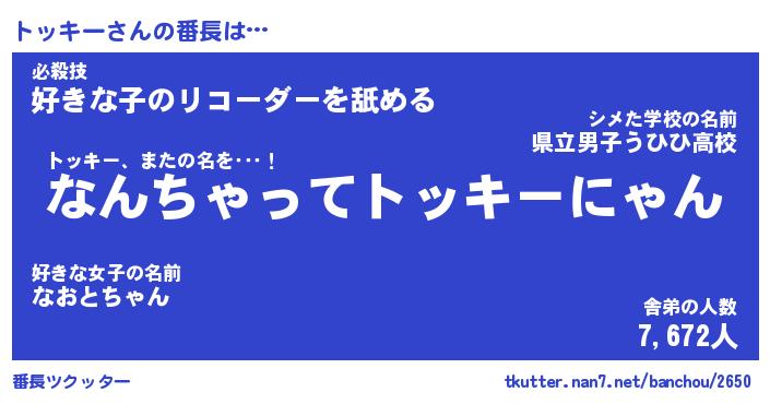 | ヘコむあだ名 | 『トッにー』『なまこ酢』『トッお』 |