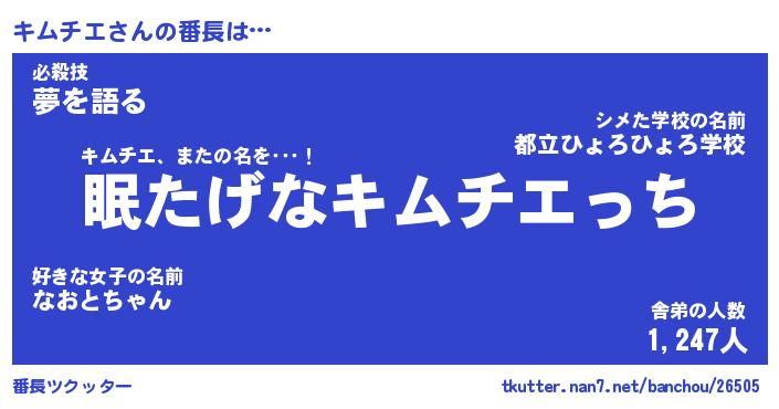 | 意味不明あだ名 | 『ペロリンキムチエ』『永久保存キムチエ』 |