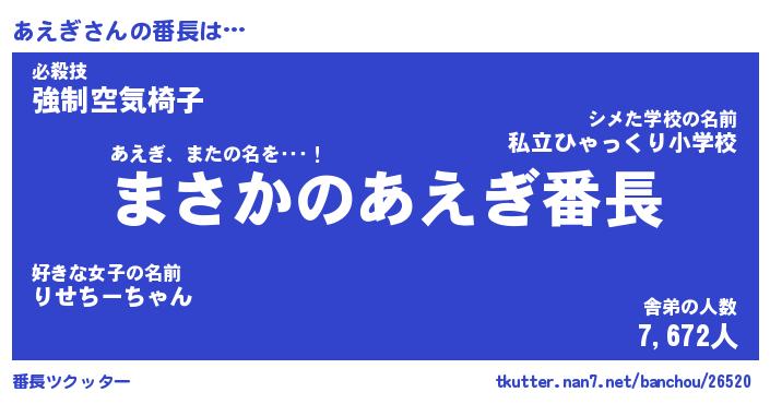 | ピコ太郎風あだ名 | 『アコ六郎』『ピア史郎』『アエ八郎』 |
