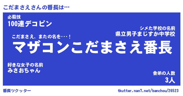 | 肩書あだ名 | 『こだまさえ店長』『こだまさえ総理大臣』 |