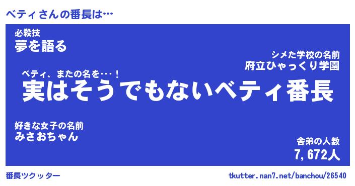 | ヒーロー風カッコイイあだ名 | 『スーパーベティ』『ウルトラベティマン』 |