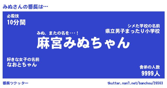 | ピコ太郎風あだ名 | 『ミコ史郎』『ピミ三郎』『ミヌ十郎』 |