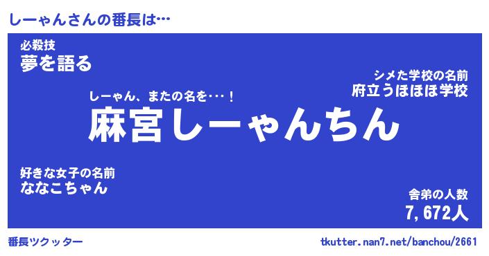 | 意味不明あだ名 | 『ペロリンしーゃん』『永久保存しーゃん』 |