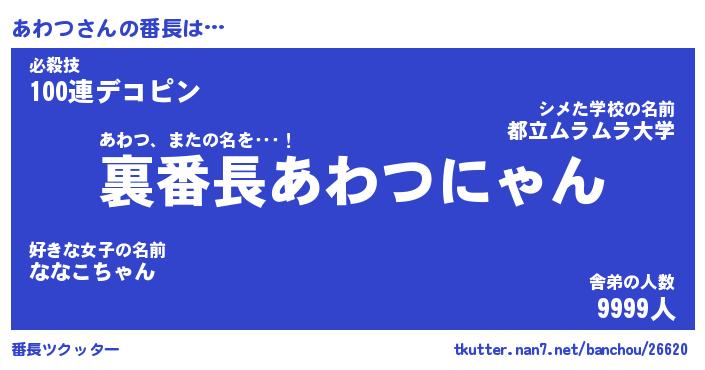 | 肩書あだ名 | 『あわつ社長』『あわつ総理大臣』 |
