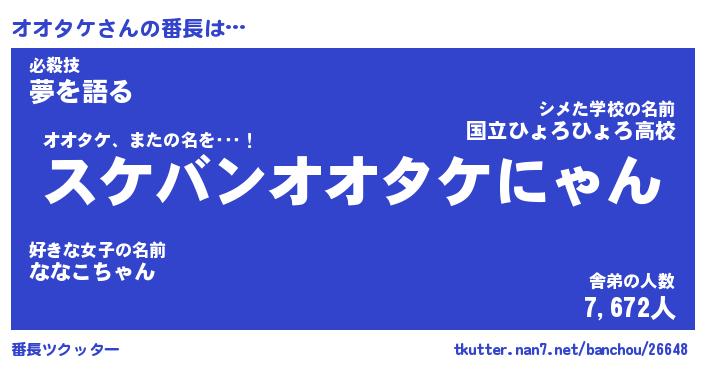 | ファンタジー風あだ名 | 『オオフェル』『エターナルオオタケー』 |
