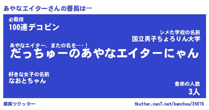 | ヒーロー風カッコイイあだ名 | 『スーパーアヤナエイター』 |