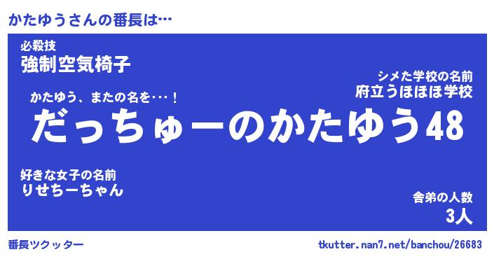 | ヒーロー風カッコイイあだ名 | 『スーパーカタユウ』『暗黒騎士カタ』 |