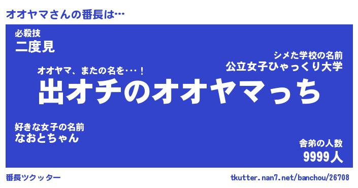 | ヒーロー風カッコイイあだ名 | 『スーパーオオヤマ』『炎刃騎士オオ』 |