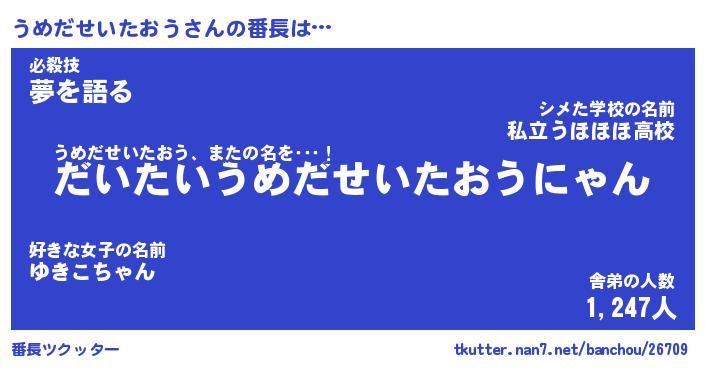 | 肩書あだ名 | 『うめだせいたおう御曹司』 |