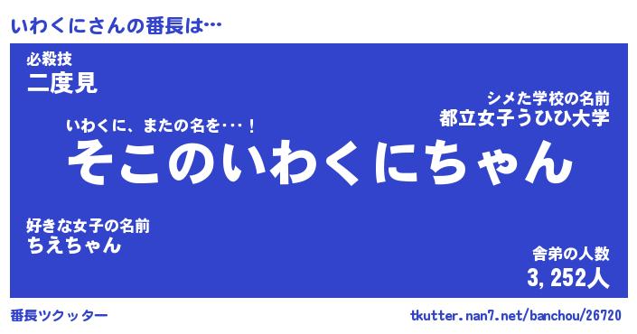 | 意味不明あだ名 | 『ペロリンいわくに』『永久保存いわくに』 |