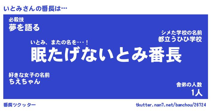 | ファンタジー風あだ名 | 『イトフェル』『エターナルイトミー』 |