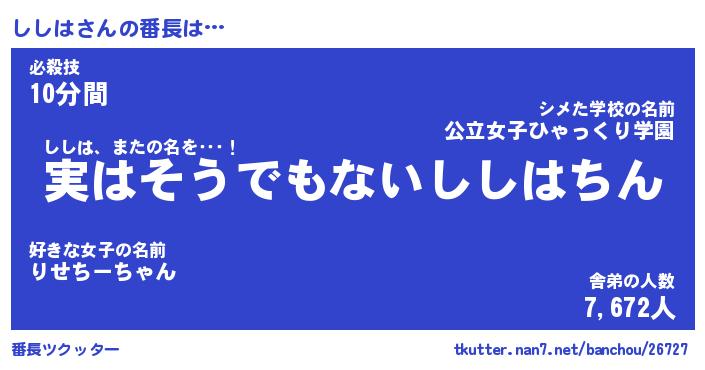 ポケモン風あだ名 | 『シシチュウ』『シシハダネ』 |