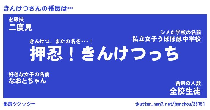 | 意味不明あだ名 | 『ペロリンきんけつ』『永久保存きんけつ』 |
