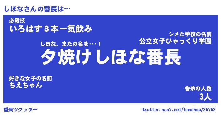 | ヒーロー風カッコイイあだ名 | 『スーパーシホナ』『ウルトラしほなマン』 |