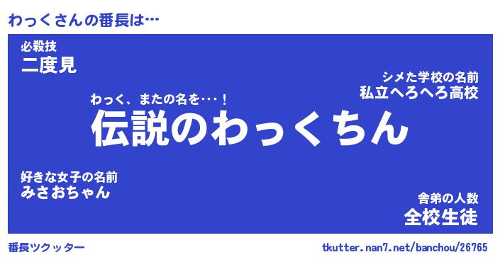 | 伝説のあだ名 | 『伝説のスナイパーわっく』 |