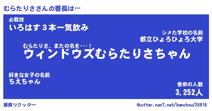 | ポケモン風あだ名 | 『ムラチュウ』『ムラタダネ』 |