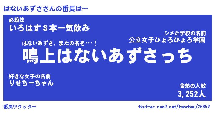 | ヒーロー風カッコイイあだ名 | 『スーパーハナイアズサ』『幻影騎士ハナ』 |