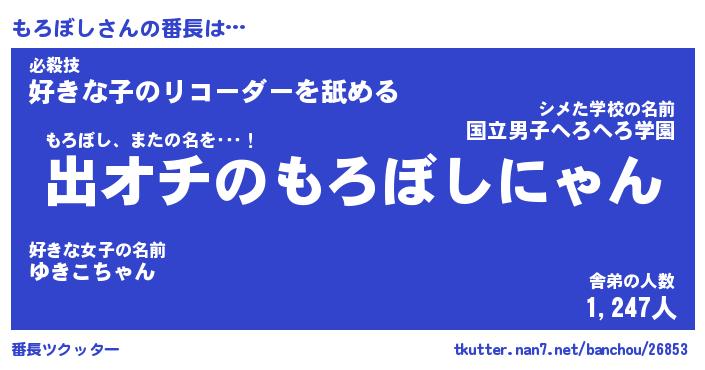 | 意味不明あだ名 | 『ペロリンもろぼし』『永久保存もろぼし』 |