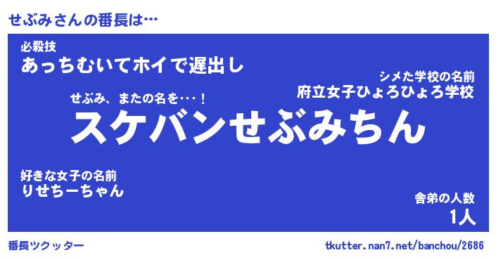| 意味不明あだ名 | 『ペロリンせぶみ』『せぶみフォーエバー』 |