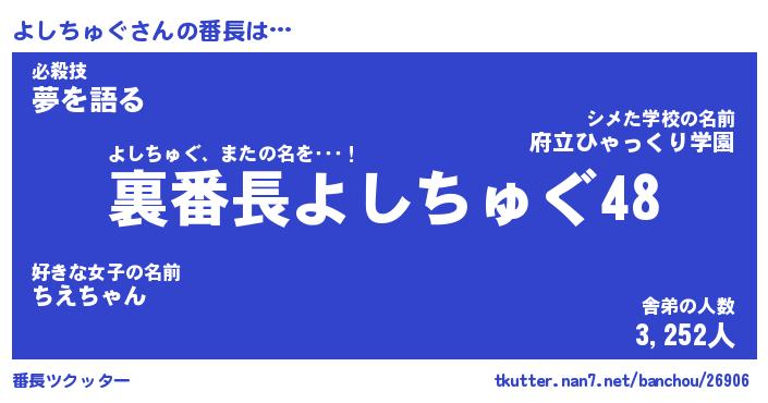 | 伝説のあだ名 | 『不死鳥のスナイパーよしちゅぐ』 |