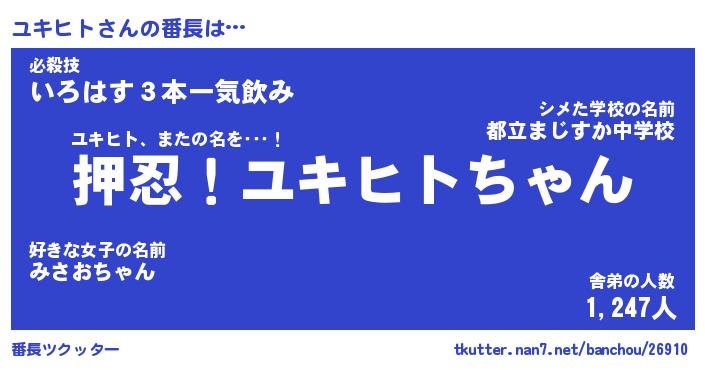 | ヒーロー風カッコイイあだ名 | 『スーパーユキヒト』『銀牙騎士ユキ』 |