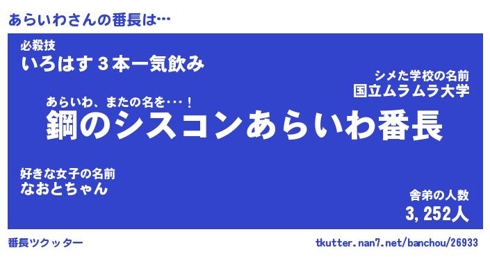 | 肩書あだ名 | 『あらいわCEO』『あらいわ大統領』 |