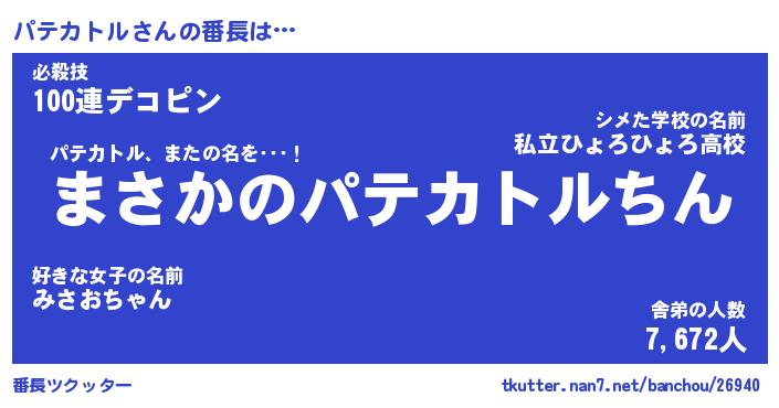 | ポケモン風あだ名 | 『パテチュウ』『パテカダネ』 |