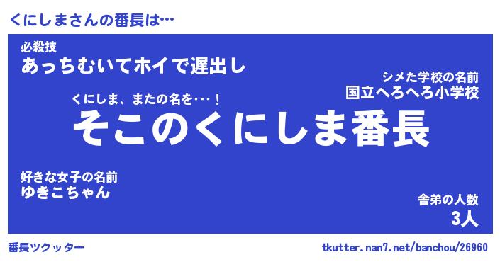 | ヘコむあだ名 | 『くににゅー』『レバニラ』『くにを』 |