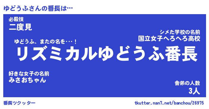 | ファンタジー風あだ名 | 『ユドフェル』『エターナルユドウフー』 |