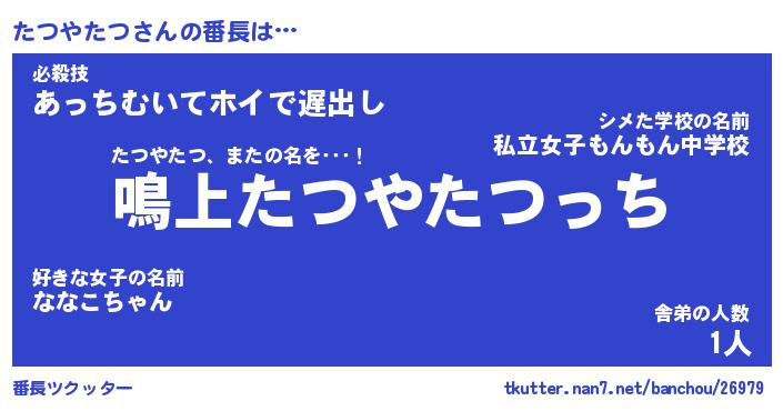 | ファンタジー風あだ名 | 『タツフェル』『エターナルタツヤタツー』 |