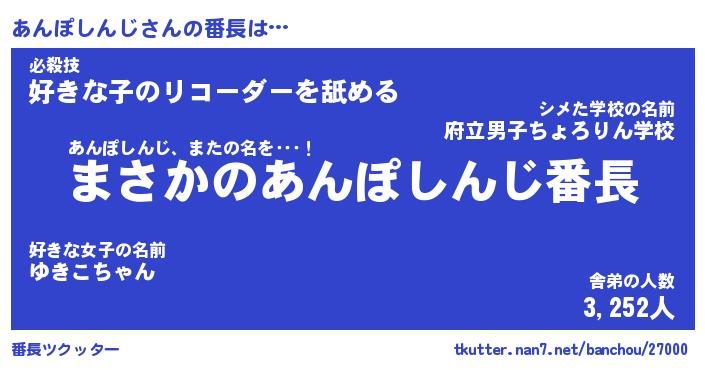| 男性向けラノベタイトル風あだ名 | 『あんぽしんじの憂鬱』 |