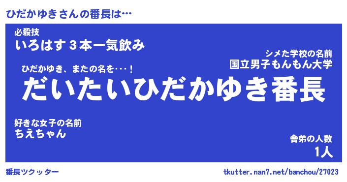 | ヒーロー風カッコイイあだ名 | 『スーパーヒダカユキ』『幻影騎士ヒダ』 |