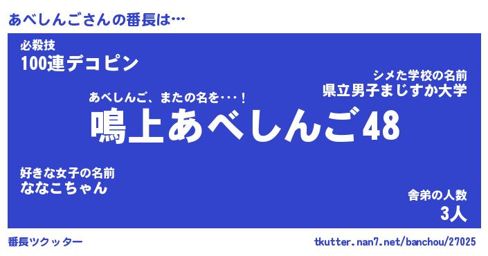 | 伝説のあだ名 | 『封印されしスナイパーあべしんご』 |