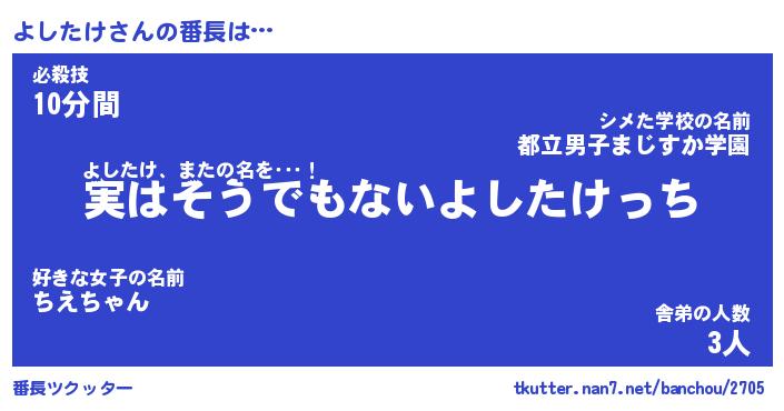 | ポケモン風あだ名 | 『ヨシチュウ』『ヨシタダネ』 |