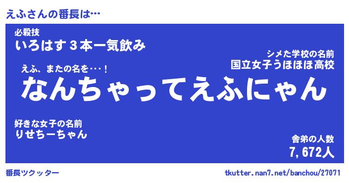 | 2回繰り返すあだ名 | 『えふえふ』『ええふふ』『ぬらぬら』 |