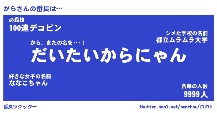 | ヘコむあだ名 | 『からにゅー』『つくし』『からっぺ』 |