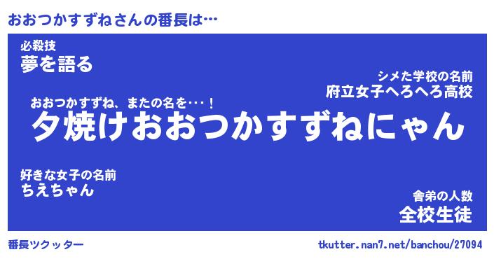 | ヒーロー風カッコイイあだ名 | 『スーパーオオツカスズネ』 |