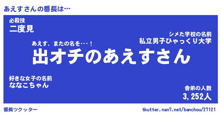 | 2回繰り返すあだ名 | 『あえあえ』『ああええ』『ぬるぬる』 |