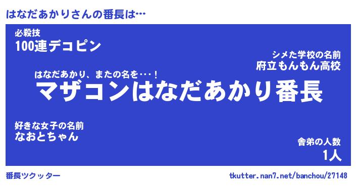 | ヘコむあだ名 | 『はなもー』『つくし』『はなお』 |