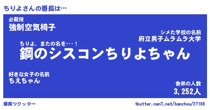 | 意味不明あだ名 | 『ペロリンちりよ』『ちりよフォーエバー』 |